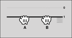 This can be visualized with two (or more) hands that can pull the line to 1, and a spring that pushes it to 0: