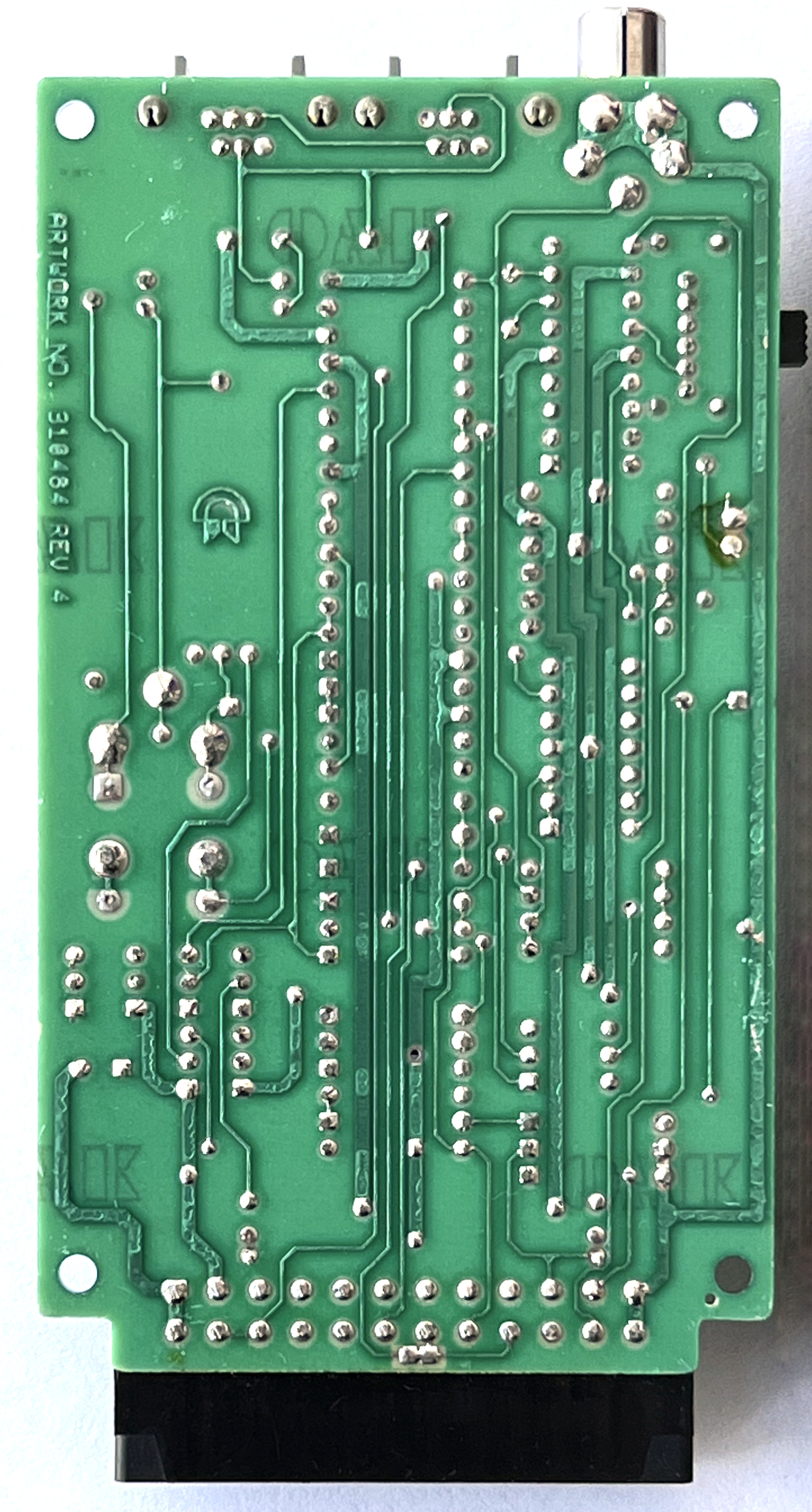 • an RCA audio connector. The circuitry in the modem only does the 300 baud data transmission part once the telephone connection is established – tone dialing is done by using software to generate the audio using the C64’s sound chip, which is looped into this connector! (Pulse dialing is also done in software, by timing on-hook and off-hook events.)